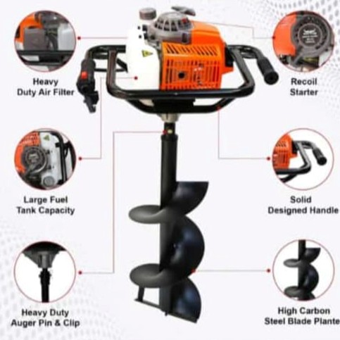 Tõhus raskeveokitega-varustatud suure jõudlusega tugeva ajakohastatud terasraami, vastupidava käigukastiga, mis sobib ühe inimese käitamiseks, on sellel 2-käigulisel mootoril tugeva bensiini maakera 63cc kiire kiirus ja kõrge efektiivsus potholing kasutamise ja muude põllumajanduse või tööstuslike tööde ajal.